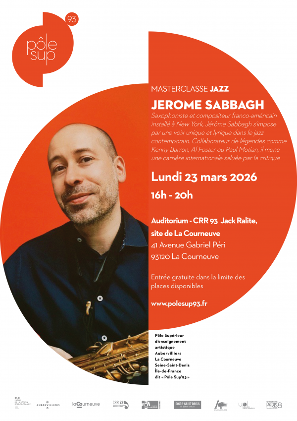 Saisissez vos mots-clés accès étudiants profs oasis recherche instagram facebook le pôle sup’93Actualités présentation projet pédagogique ÉQUIPES LES PARTENAIRES Nous soutenir RECRUTEMENTS ENTRER ET SE FORMERDNSPM DIPLÔME D'ÉTAT - ARTICULÉ AVEC LE DNSPM DIPLÔME D'ÉTAT - FORMATION PROFESSIONNELLE VAE Étudiants / DiplômésParoles de diplômé·es Réussite des étudiants Écouter, Voir & LireÉvénements Vidéos ÉCOUTER Travail de recherche pédagogique Recherche infos pratiquesLES SITES Vie pratique étudiante / stagiaire Ressources handicap Dépôt d'annonces NOUS CONTACTER ERASMUS+ Actualités PROLONGATION EXCEPTIONNELLE DES INSCRIPTIONS AU DNSPM – GUITARE ET COR 11/02/2026 Le Pôle Sup’93 informe les candidats qu’à titre exceptionnel, les inscriptions au DNSPM (Diplôme National Supérieur Professionnel de Musicien) sont prolongées pour les spécialités guitare et cor. La... NEWSLETTER POLE SUP'93 : ACTUALITÉS FÉVRIER 2026 11/02/2026 Notre newsletter est en ligne >>>> CLIQUEZ ICI Dans cette édition du mois de février 2026 de la newsletter du Pôle Sup'93, découvrez.... ► À venir en février : « NOUVELLES PISTES » PAR... Retour en images : Création au féminin – une soirée pour révéler et comprendre 16/01/2026 Le jeudi 8 janvier 2026, le Pôle Sup’93 a proposé, à l’auditorium du CRR 93 Jack Ralite, site d’Aubervilliers, une soirée exceptionnelle consacrée à la création musicale au féminin. Cet événement a... PROGRAMMATION SAISON 25-26 DU PÔLE SUP'93 EST DISPONIBLE ! 02/10/2025 Nous sommes ravis de vous présenter la programmation de la saison 2025-2026 du Pôle Sup'93. Ce livret vous dévoile les dates et horaires de nos masterclasses, sessions de musique d’ensemble,... Retour en images : Masterclasse de saxhorn avec Vianney Desplantes 09/02/2026 Le jeudi 5 février 2026, le Pôle Sup’93 a accueilli Vianney Desplantes à l’auditorium du CRR 93 Jack Ralite, site d’Aubervilliers, à l’occasion d’une masterclasse de saxhorn ouverte aux étudiants et... Retour en images : Participation des étudiant·es/stagiaires du Pôle à la 3ᵉ édition de la Biennale de piano collectif, organisée par le Conservatoire de musique et de danse de Saint-Denis. 09/02/2026 Du 29 janvier au 1er février 2026, la ville de Saint-Denis a accueilli la 3ᵉ édition de la Biennale de piano collectif, un événement mettant à l’honneur le collectif dans la musique et la pédagogie.... voir toutes les actualités Masterclasse jazz avec Henri Texier Auditorium du CRR 93, site de La Courneuve 17/02/2026 - 13:00 Masterclass CARTE BLANCHE #3 ORGANISÉE PAR LE BDE DU PÔLE SUP'93 Auditorium du CRR93, site d'Aubervilliers 18/02/2026 - 19:30 Concert des étudiant·es Masterclasse piano avec Bastien Dollinger Auditorium du CRR93, site d'Aubervilliers 09/03/2026 - 10:00 Masterclass
