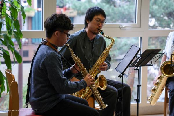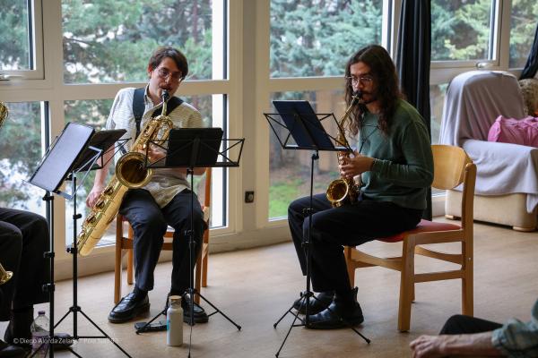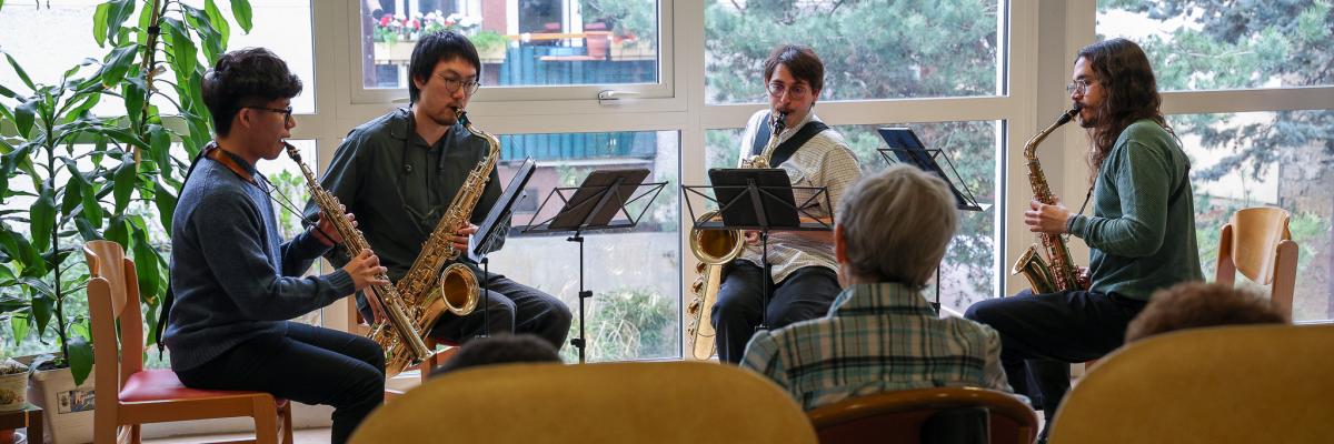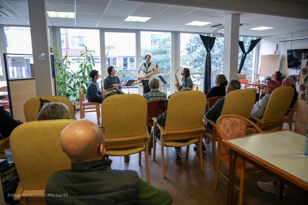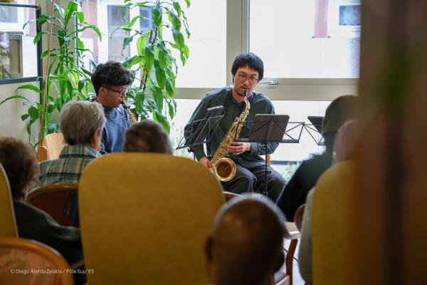 Des étudiants en saxophone du département des musiques classiques à contemporaines, encadrés par Carmen Lefrançois, ont proposé un concert de musique de chambre à la Résidence Salvador Allende à Aubervilliers.