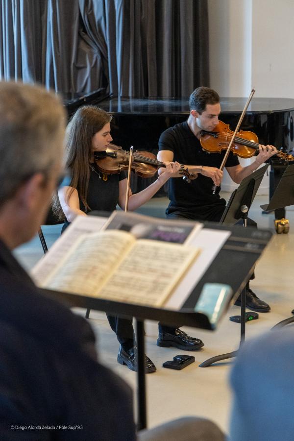 Le jeudi 9 avril 2026, le plateau 001 du CRR 93 Jack Ralite d’Aubervilliers a vibré toute la journée au rythme de la musique de chambre. De 9h à 15h, 18 ensembles réunissant les étudiant·es du Pôle Sup’93 se sont succédé pour offrir au public une immersion dans un répertoire riche et varié.