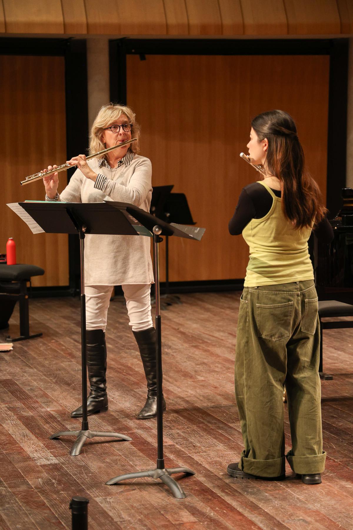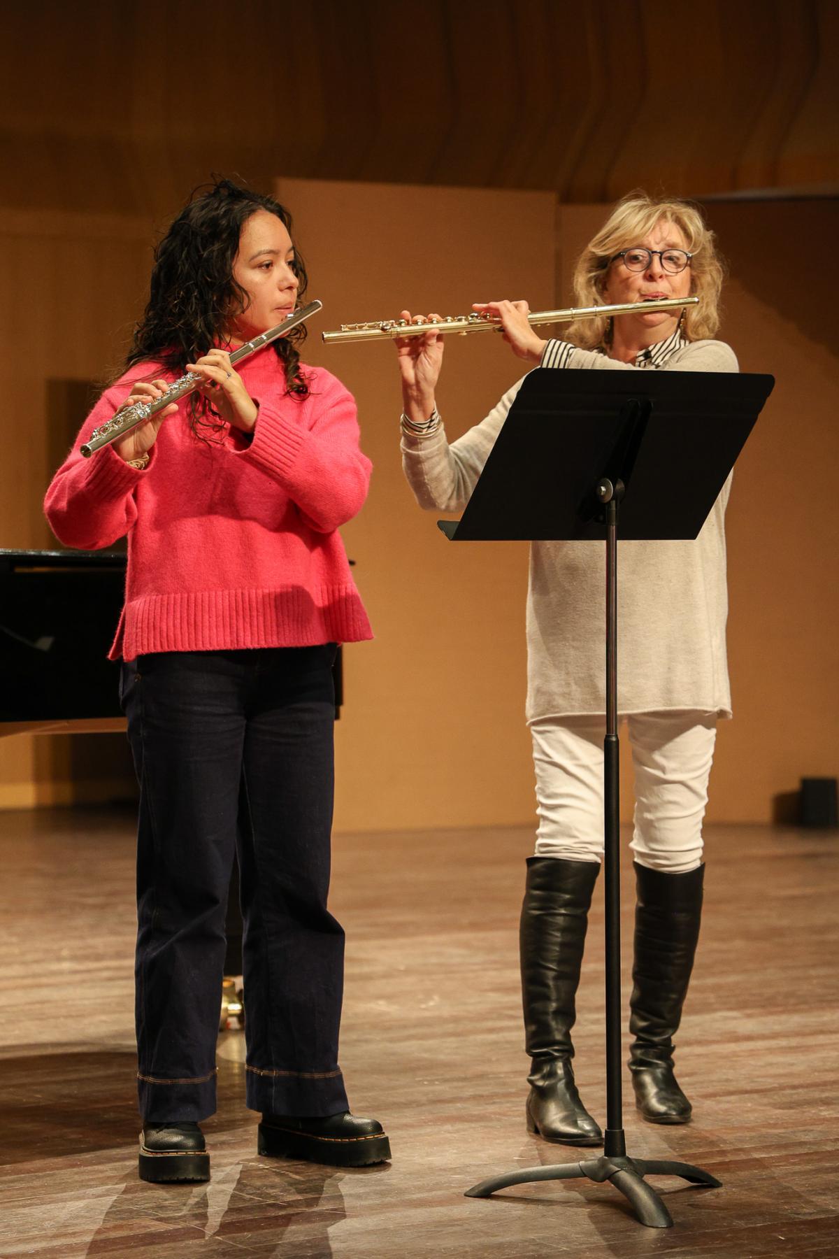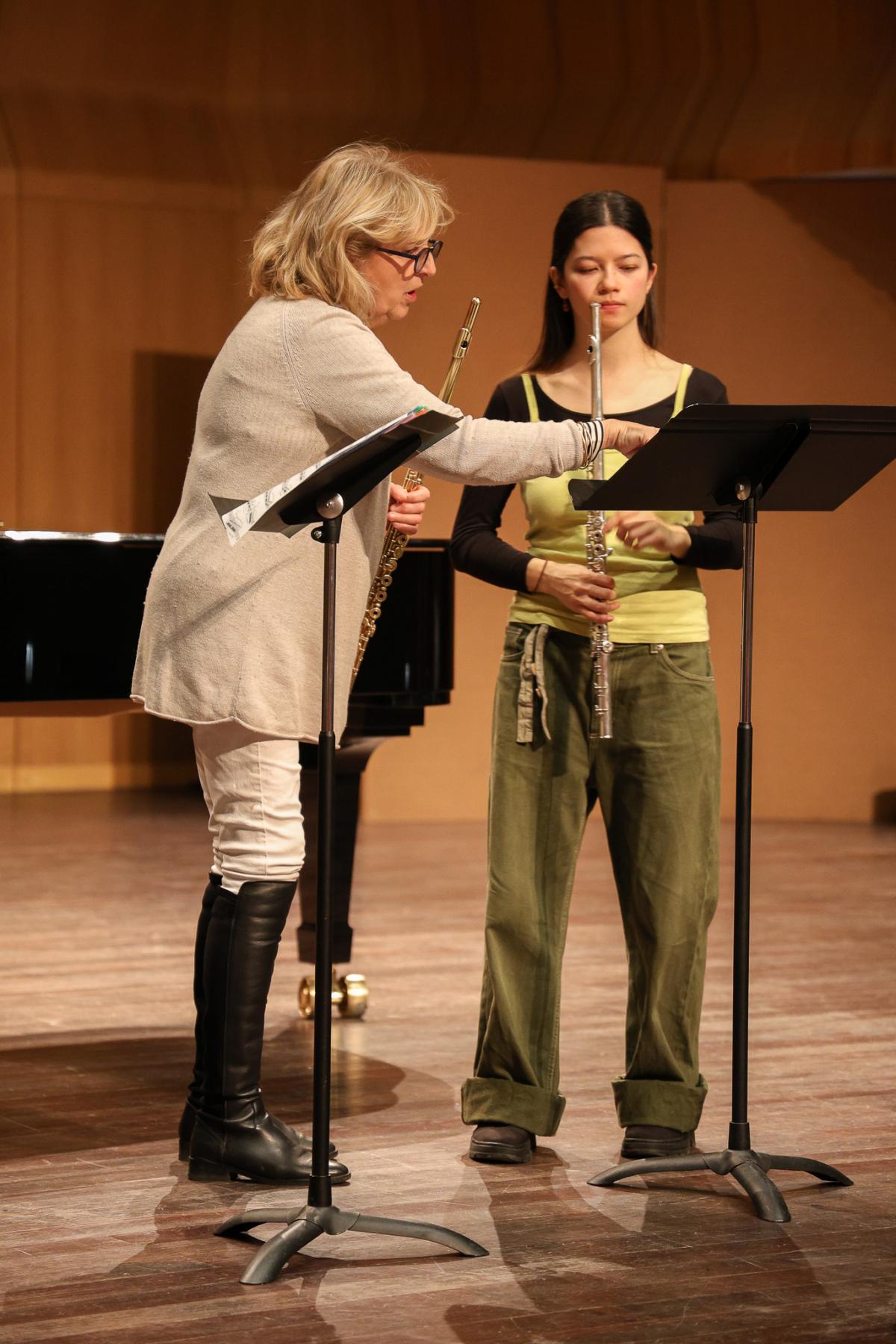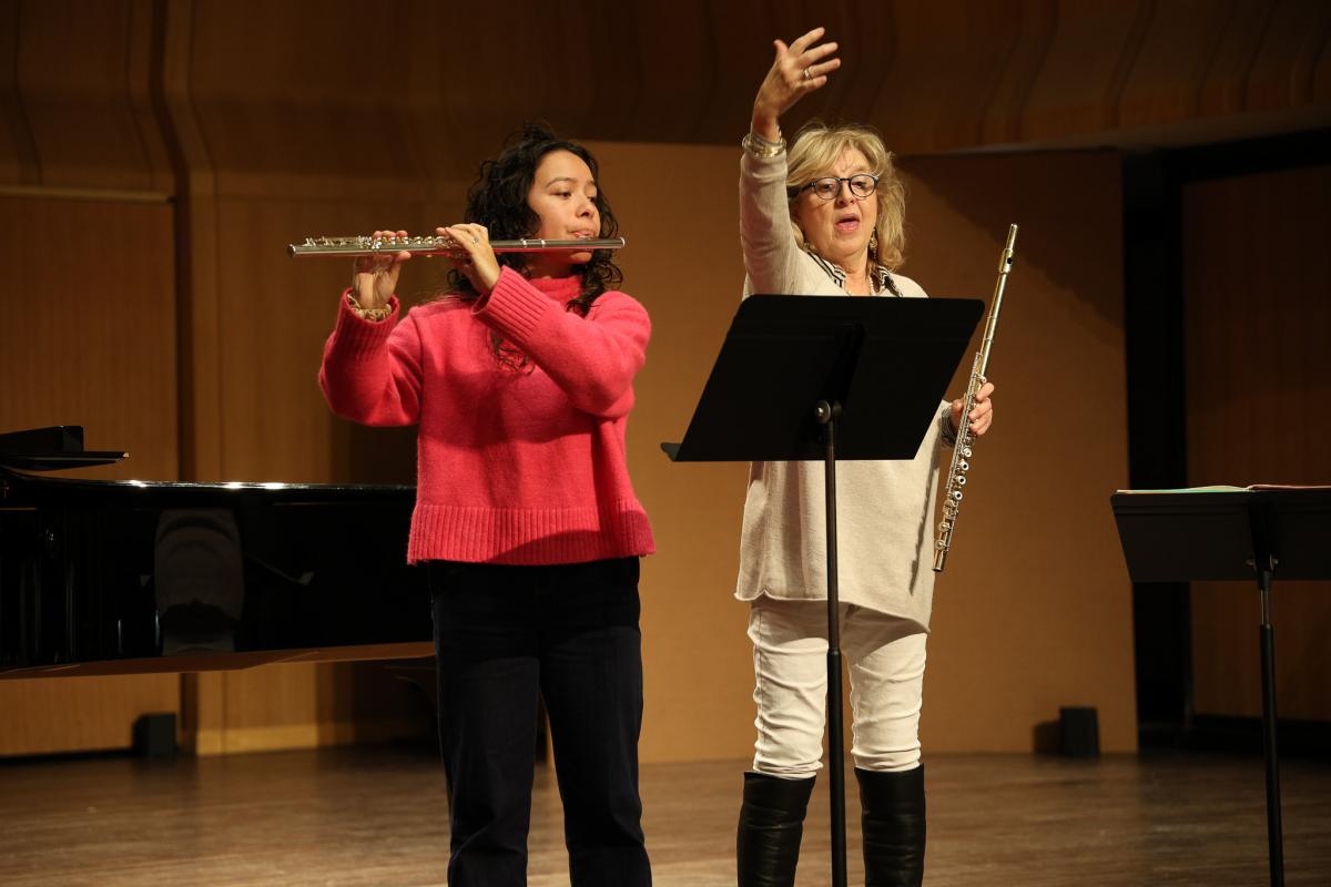 Flûte solo de l’Orchestre symphonique de la radio SWR à Stuttgart, invitée régulière de l’Orchestre philharmonique de Berlin et professeure à l’Université de musique et de théâtre de la Sarre, elle a offert aux étudiant·es du Pôle Sup’93 et de l’IESM Aix-en-Provence un moment privilégié d’apprentissage et de partage à l'auditorium du CRR 93 Jack Ralite, site d'Aubervilliers.