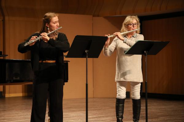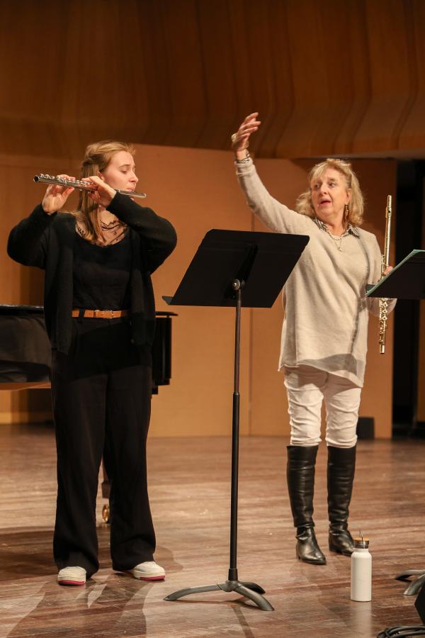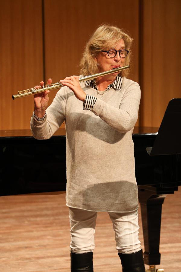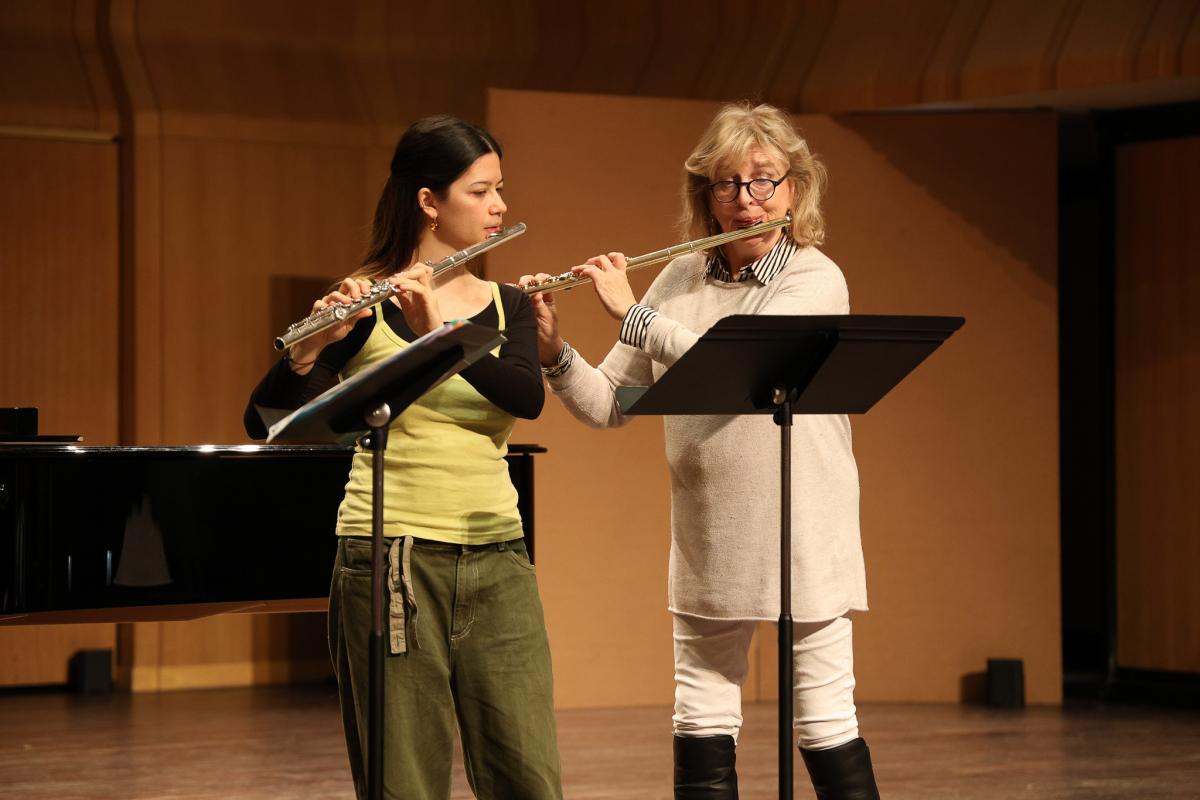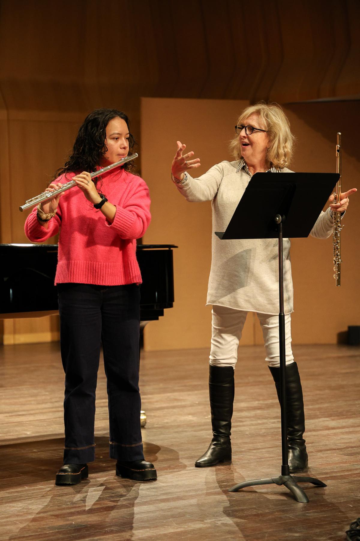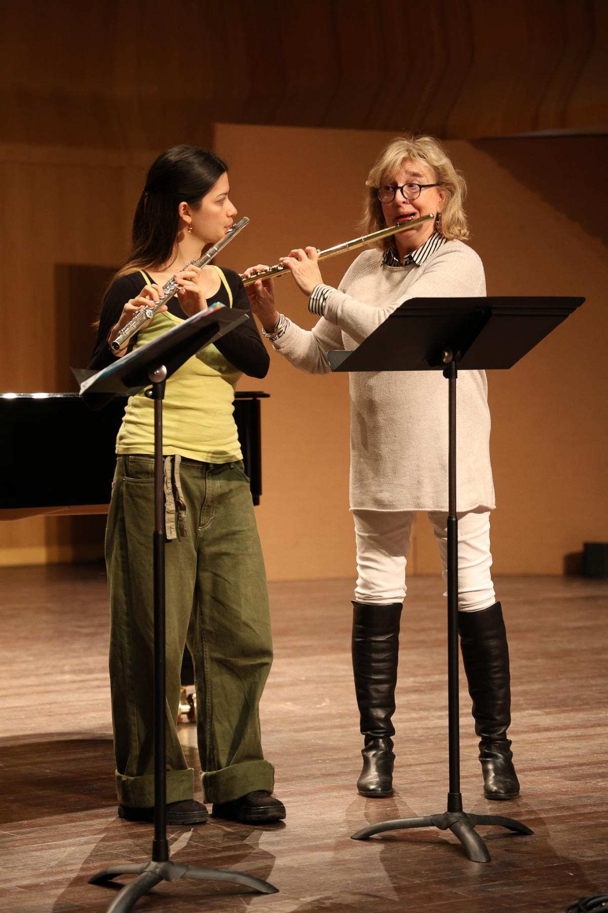 Flûte solo de l’Orchestre symphonique de la radio SWR à Stuttgart, invitée régulière de l’Orchestre philharmonique de Berlin et professeure à l’Université de musique et de théâtre de la Sarre, elle a offert aux étudiant·es du Pôle Sup’93 et de l’IESM Aix-en-Provence un moment privilégié d’apprentissage et de partage à l'auditorium du CRR 93 Jack Ralite, site d'Aubervilliers.