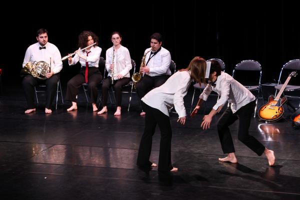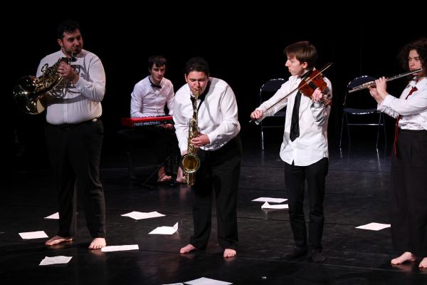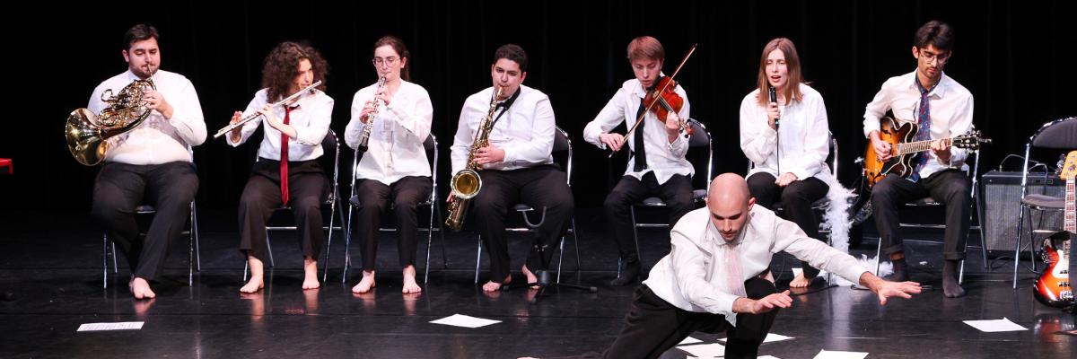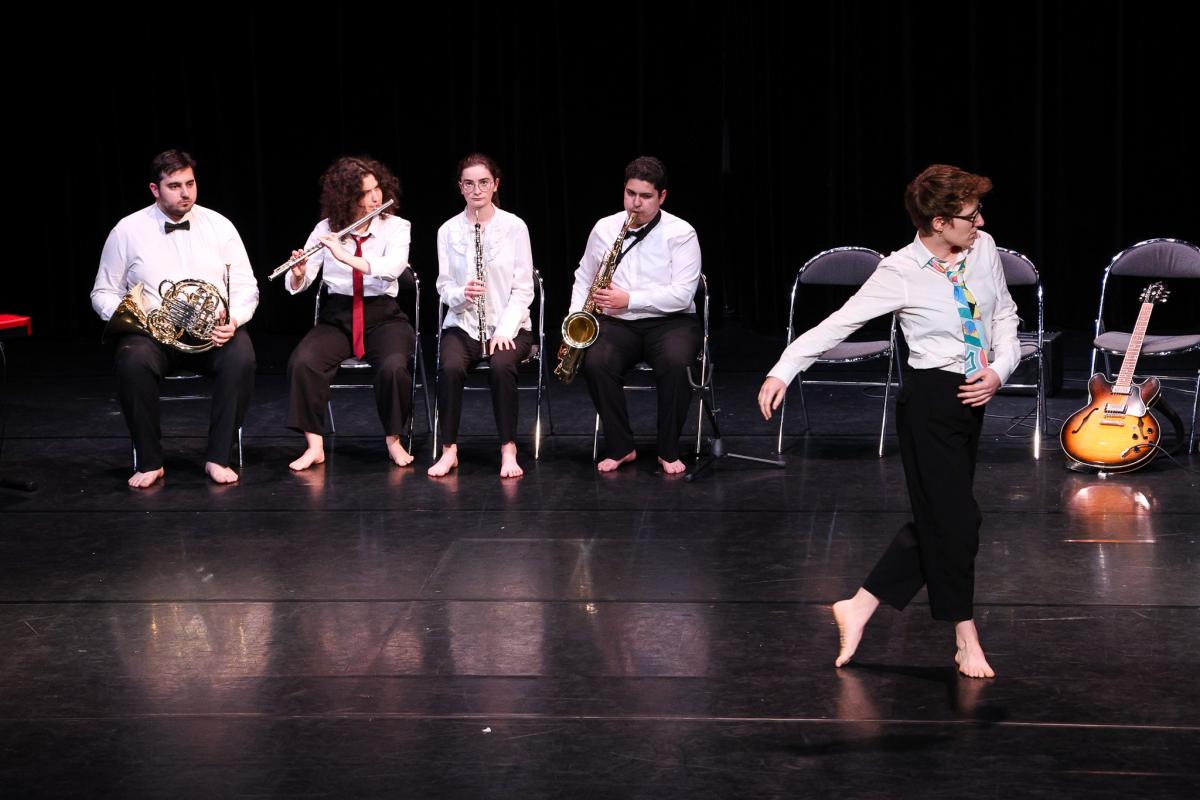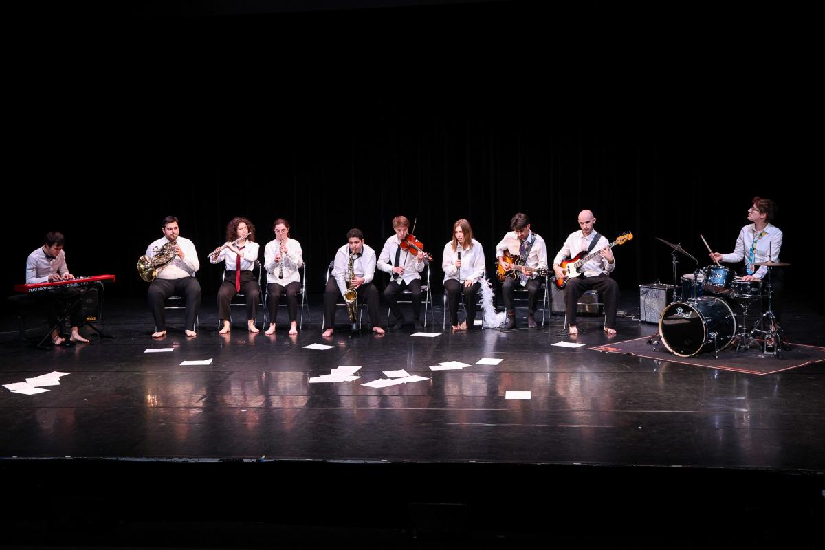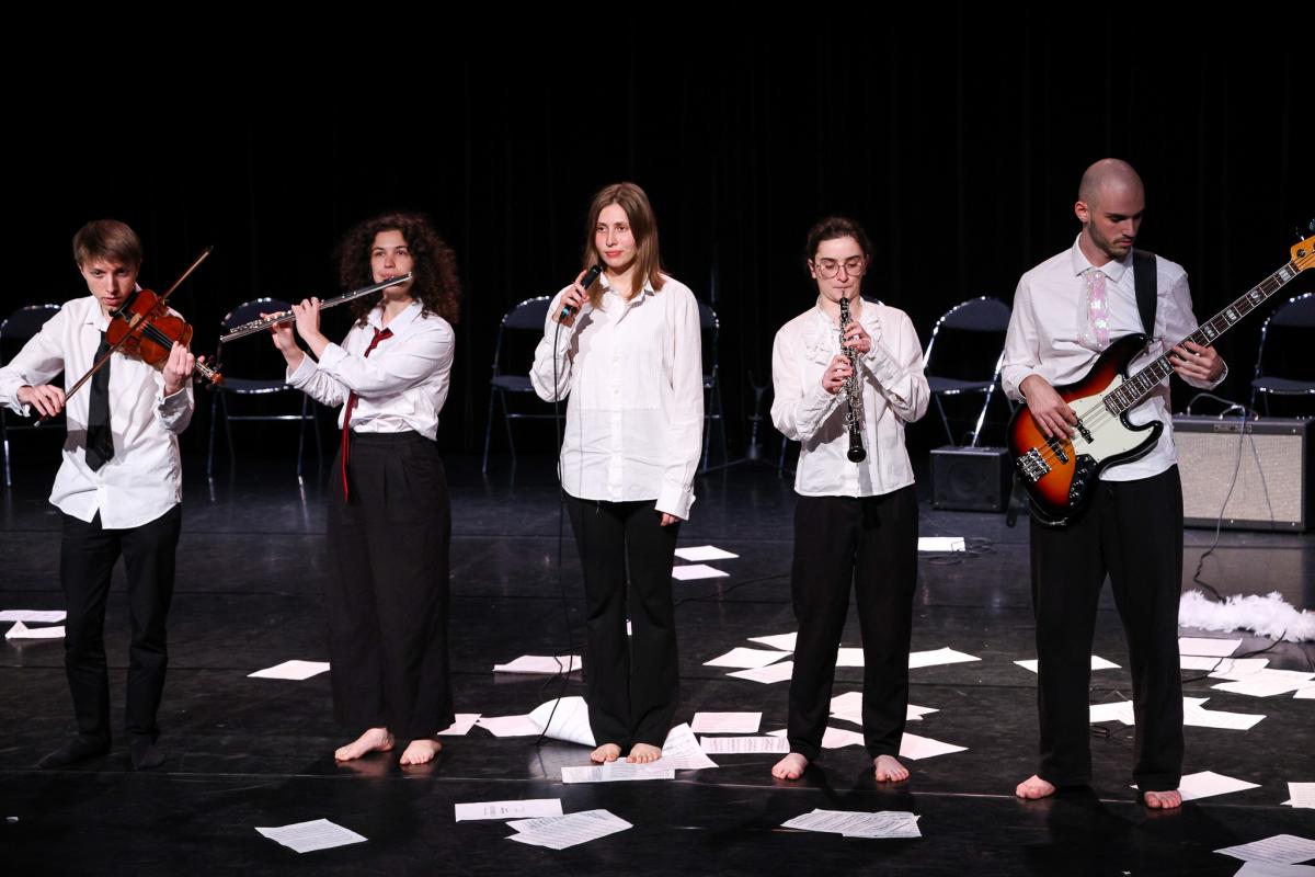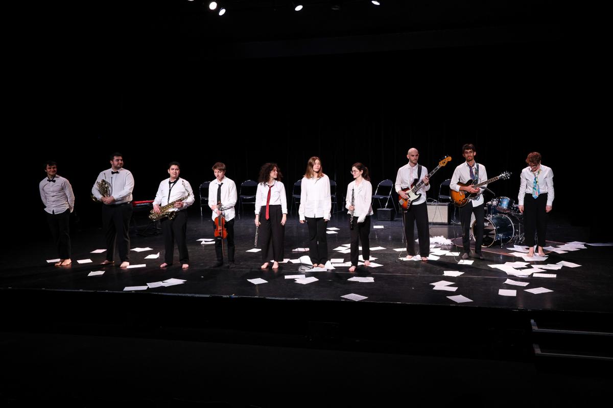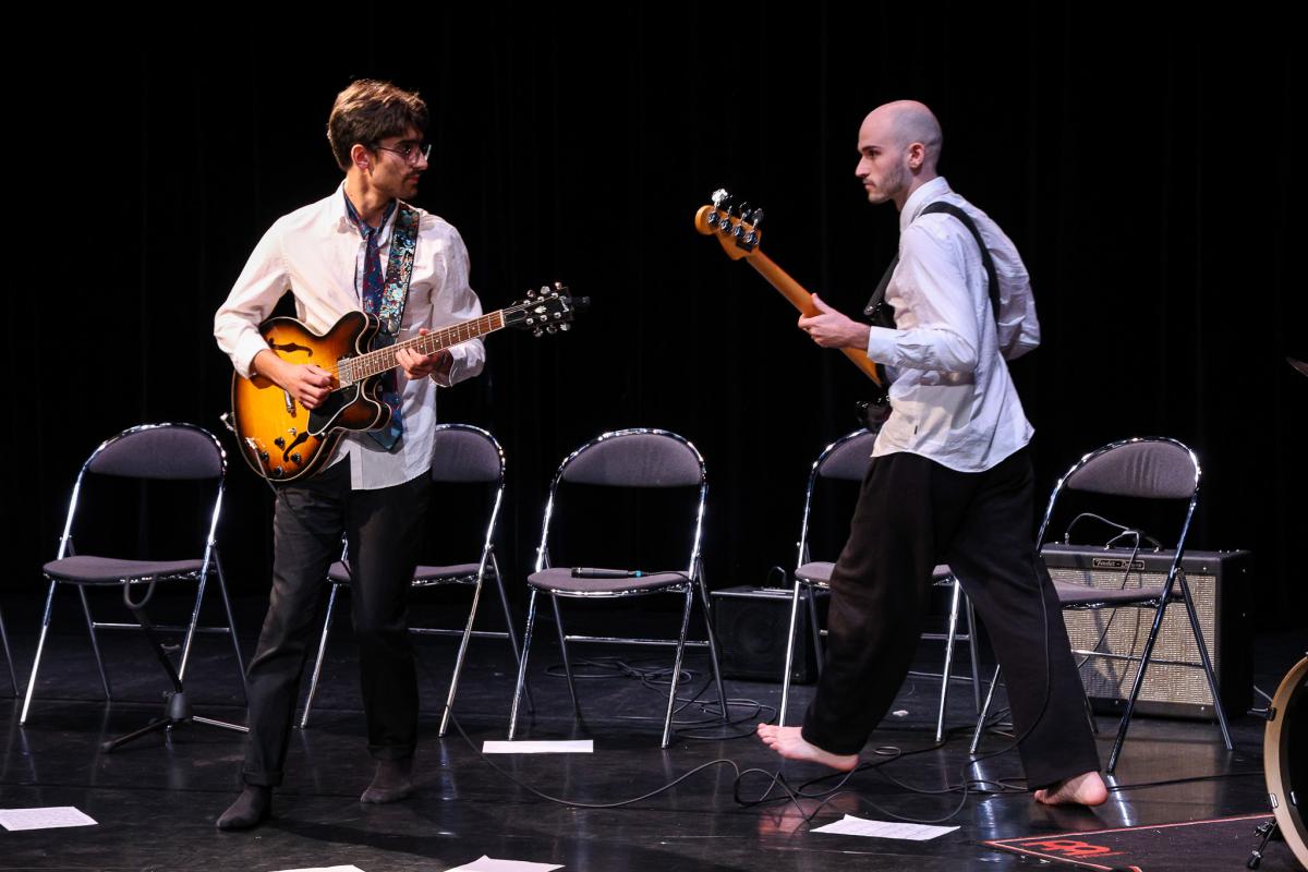 Issue de deux journées d’atelier, au cours desquelles les étudiant·es du Pôle Sup’93 — des départements jazz et musique classique — ont exploré la présence scénique à travers des recherches chorégraphiques, faisant de la scène un terrain de jeu sensible et poétique, la restitution a mis en lumière ce processus créatif. Celui-ci s’est notamment nourri d’un poème de Fernando Pessoa, donnant naissance à des formes libres mêlant musique et mouvement.