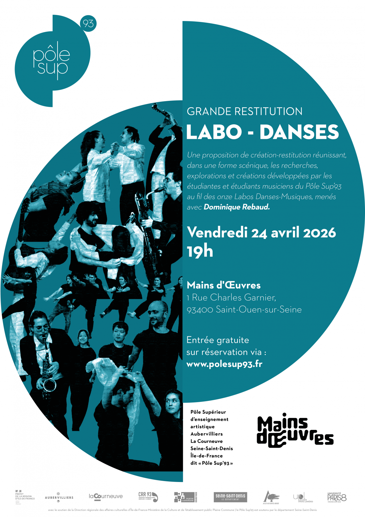 Le Pôle Sup’93 présente la Grande restitution des Labos Danses-Musiques, une création collective réunissant, dans une forme scénique, les recherches, explorations et créations développées par les étudiantes et étudiants musiciens du Pôle Sup’93 au fil des onze Labos Danses-Musiques, menés avec la chorégraphe Dominique Rebaud.