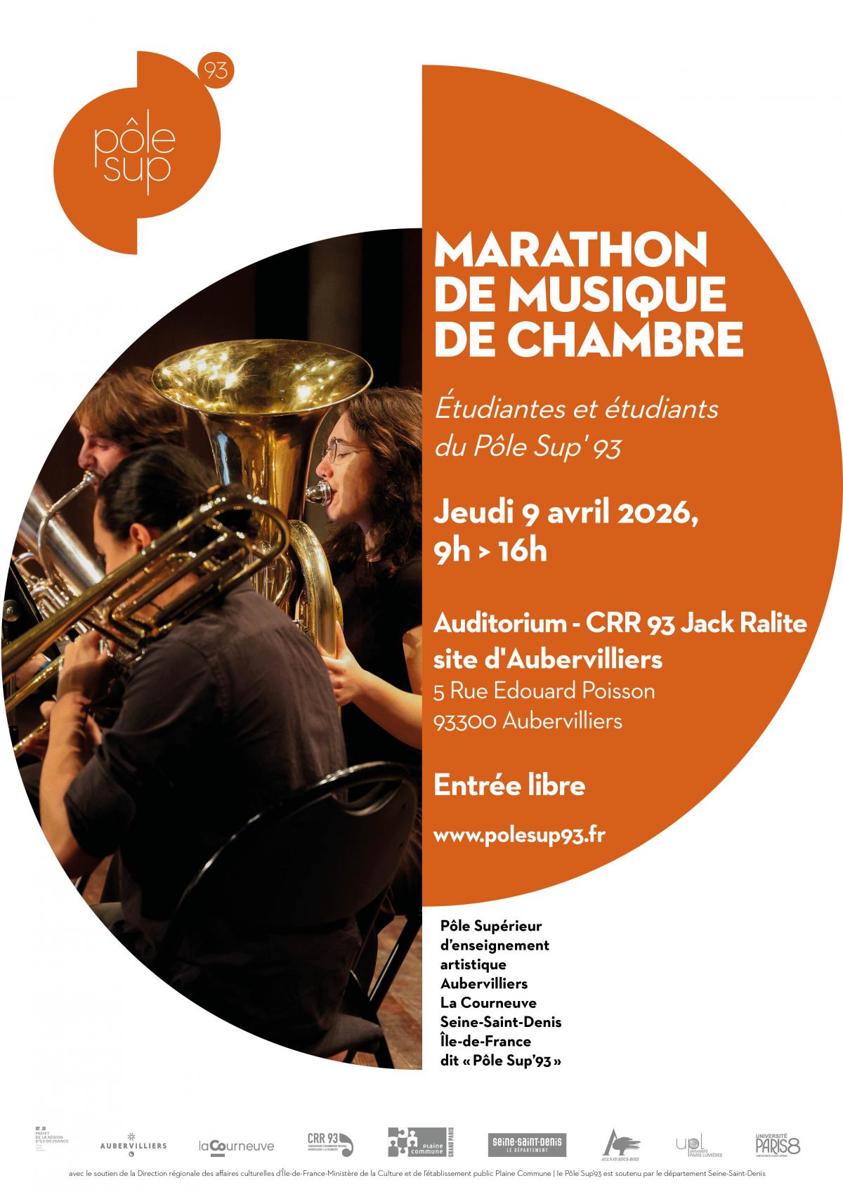 Venez écouter les étudiants et étudiantes du Pôle Sup'93 lors du Marathon de Musique de Chambre. À partir de 9h du matin, 18 ensembles allant du duo au quatuor se produiront à l'auditorium du CRR 93 Jack Ralite site d’Aubervilliers.