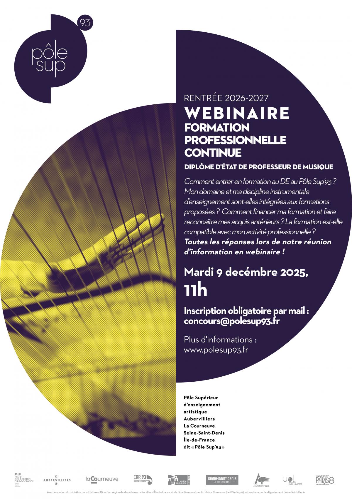 Réunion d'information en webinaire | formation professionnelle continue au Diplôme d'État de professeur de musique - Inscriptions 2026-2027.